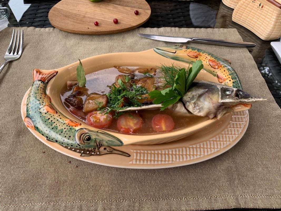 3. Супы - тут вообще меня пристрелила фраза что «все супы готовятся из-под ножа», т.е. заказали уху - видимо её все это время варили, но что-то мало времени, т.к. бульон должен быть наварист))), и ХОЛОДНЫЙ зелёный щи - его видимо тоже сварили и потом охлаждали😂😂, к супчикам заказали по 50 водочки и текилы, по итогу супы принесли, а водку НЕТ, пришлось снова ждать когда официантка освободится и в очередной раз напоминать про заказ🤦♂️, на что она ответила что уже наливают и побежала за напитком!!!